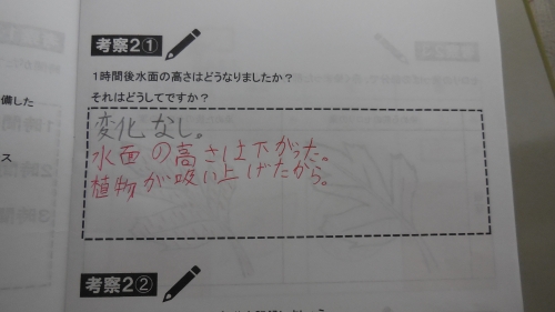 小4・5は、実験の続きの観察をテキストにまとめる