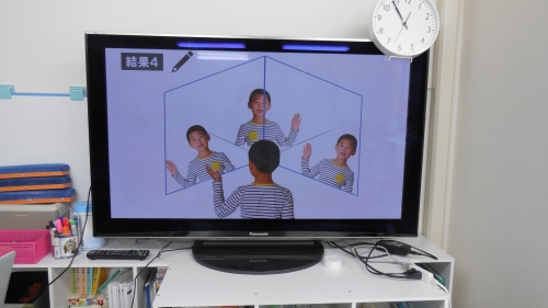 鏡にうつる像は、上下はそのまま、左右は逆になります。横長に伸びます!