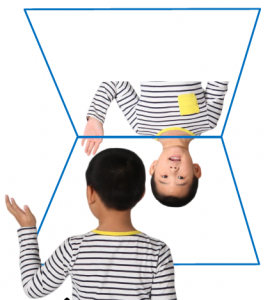 鏡にうつる像は、上下はそのまま、左右は逆になります。縦長に伸びます!