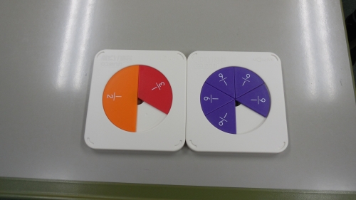 パズルを使って大きさの等しい分数を体感しました。